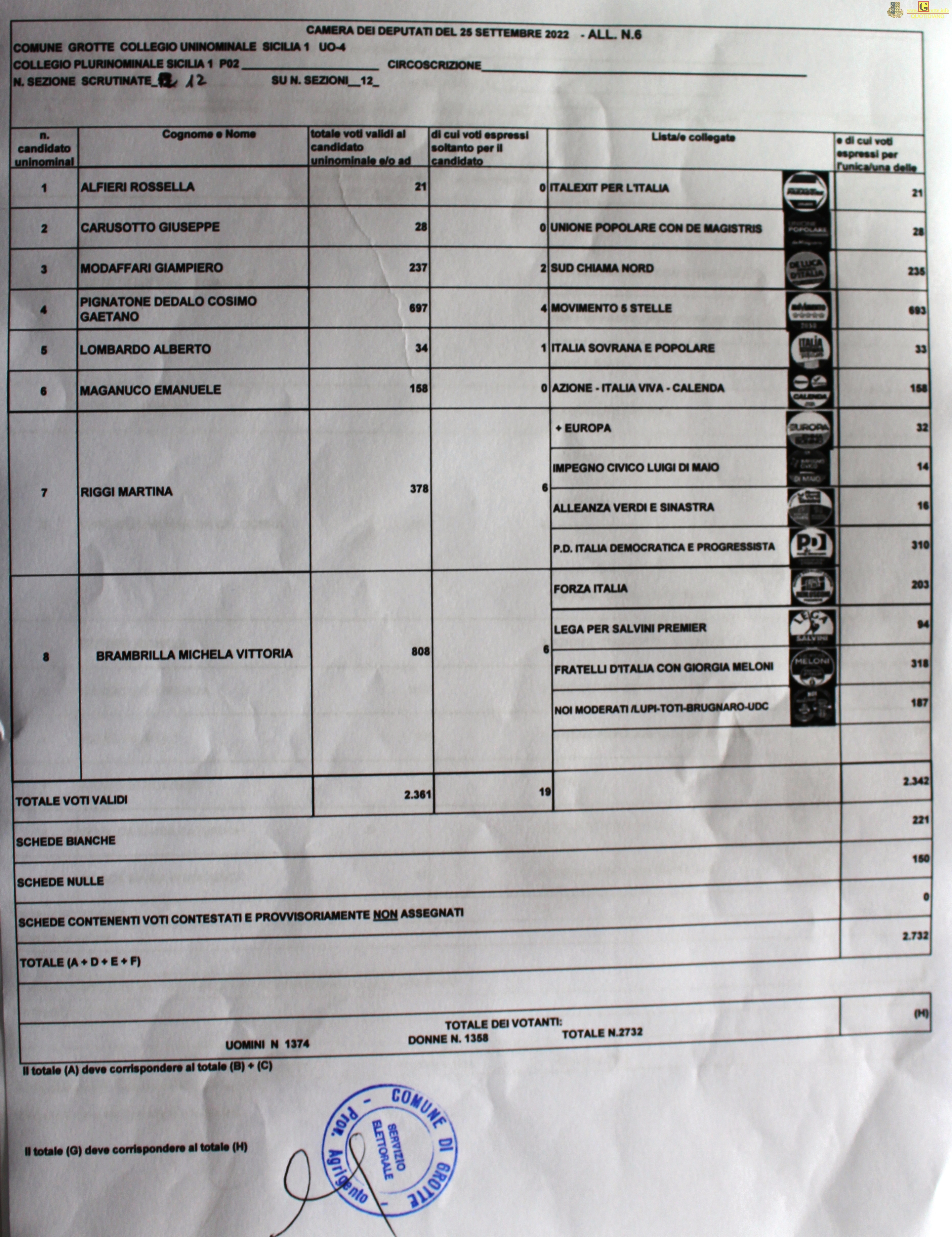 Gli Uffici Elettorali delle sezioni (12 per il Comune di Grotte) sono