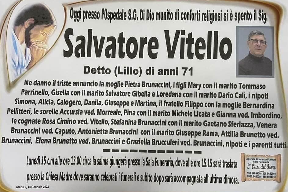 Salvatore "Lillo" Vitello; oggi le esequie