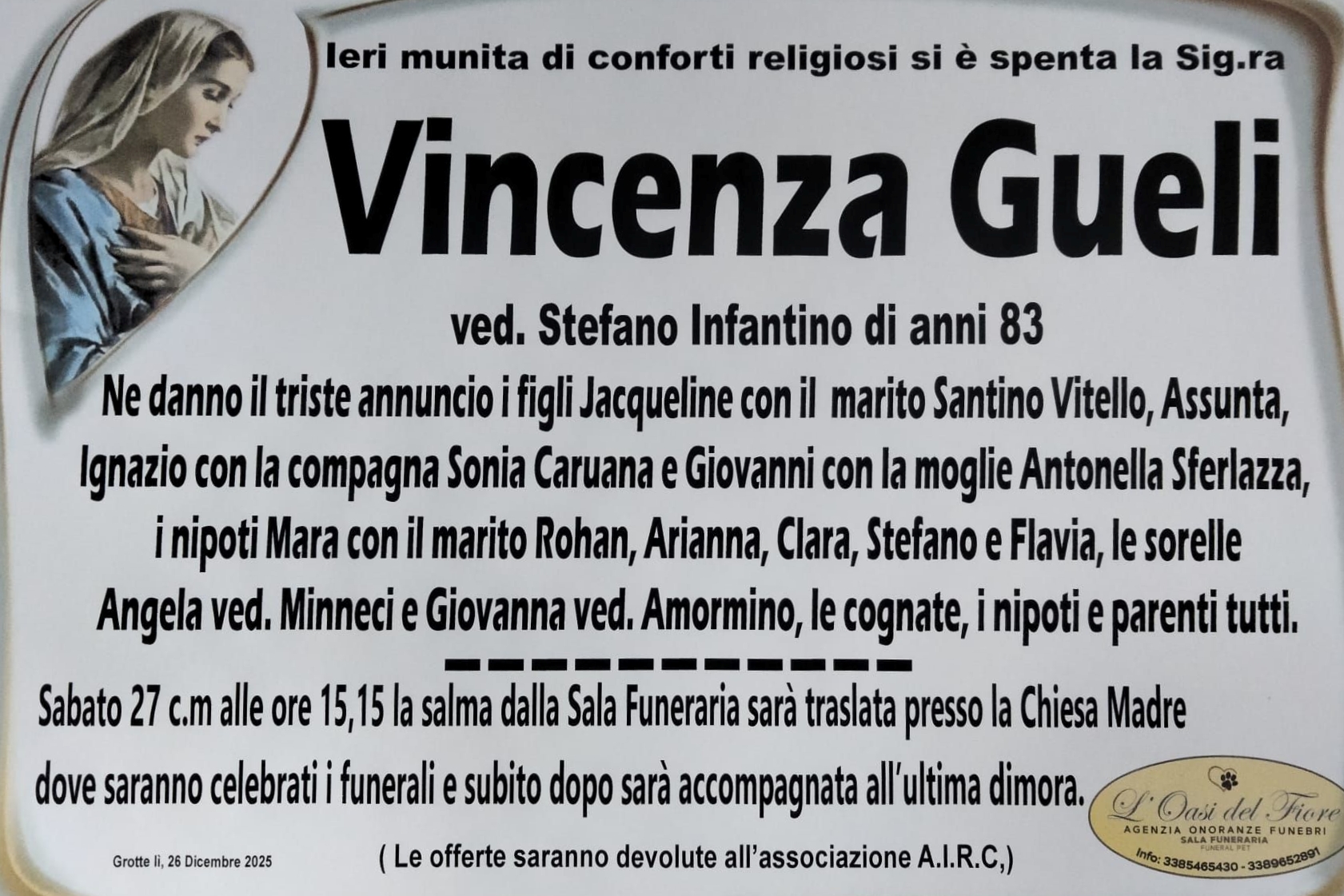 Vincenza Gueli, vedova Stefano Infantino, all'età di 83 anni.