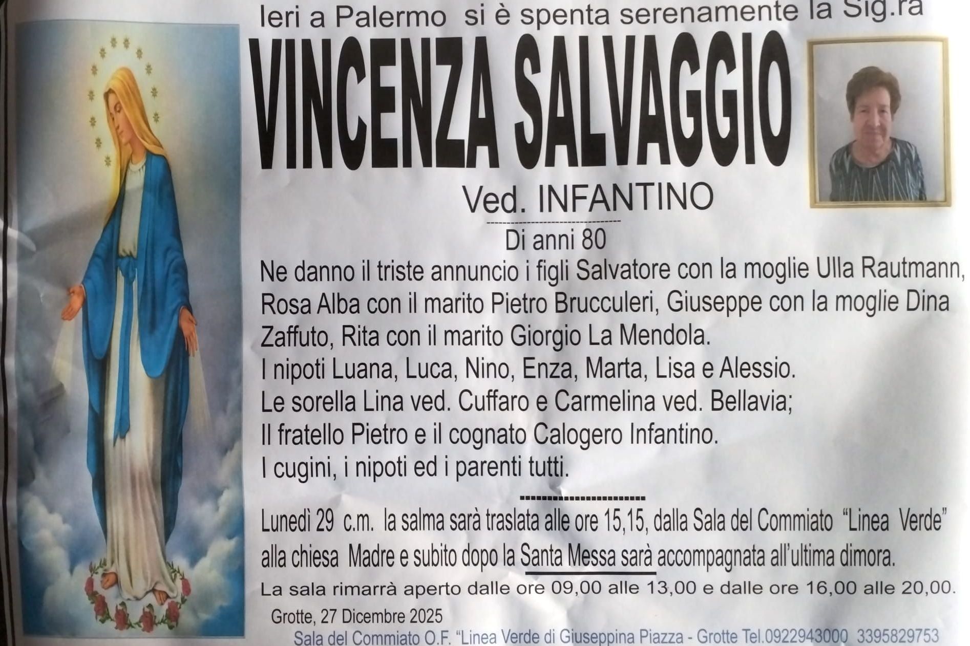 Vincenza Salvaggio, vedova Infantino, all'età di 80 anni.