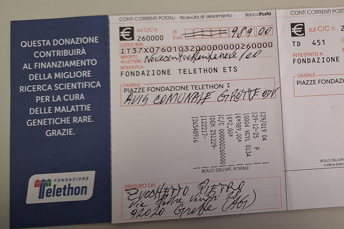 euro è stato versato a TELETHON.