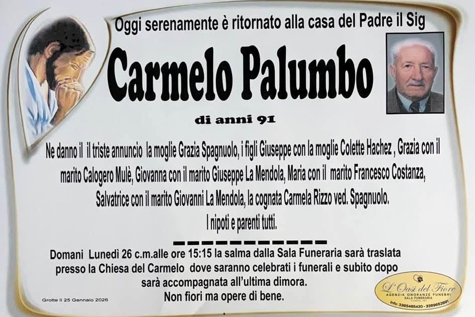 Le esequie verranno celebrate lunedì 26 gennaio,