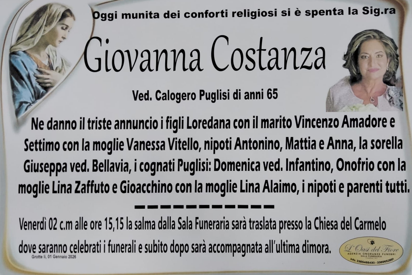 Giovanna Costanza, vedova Calogero Puglisi, all'età di 65 anni.