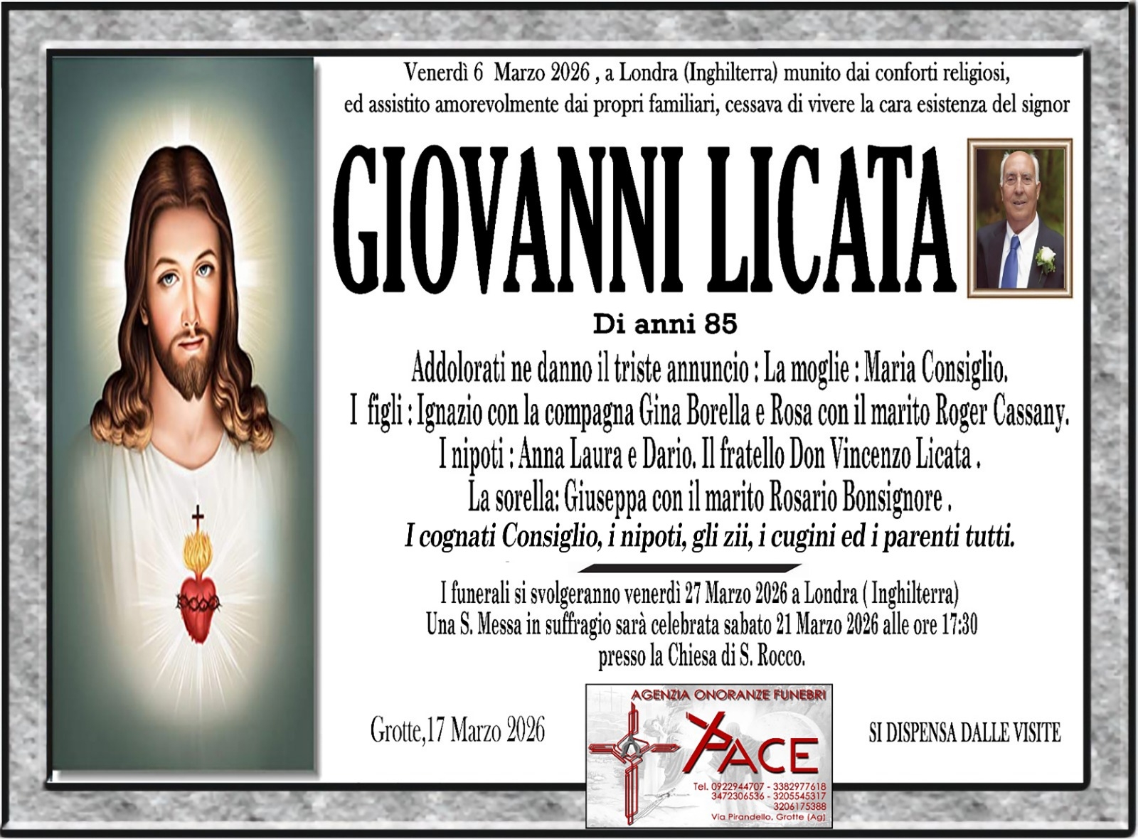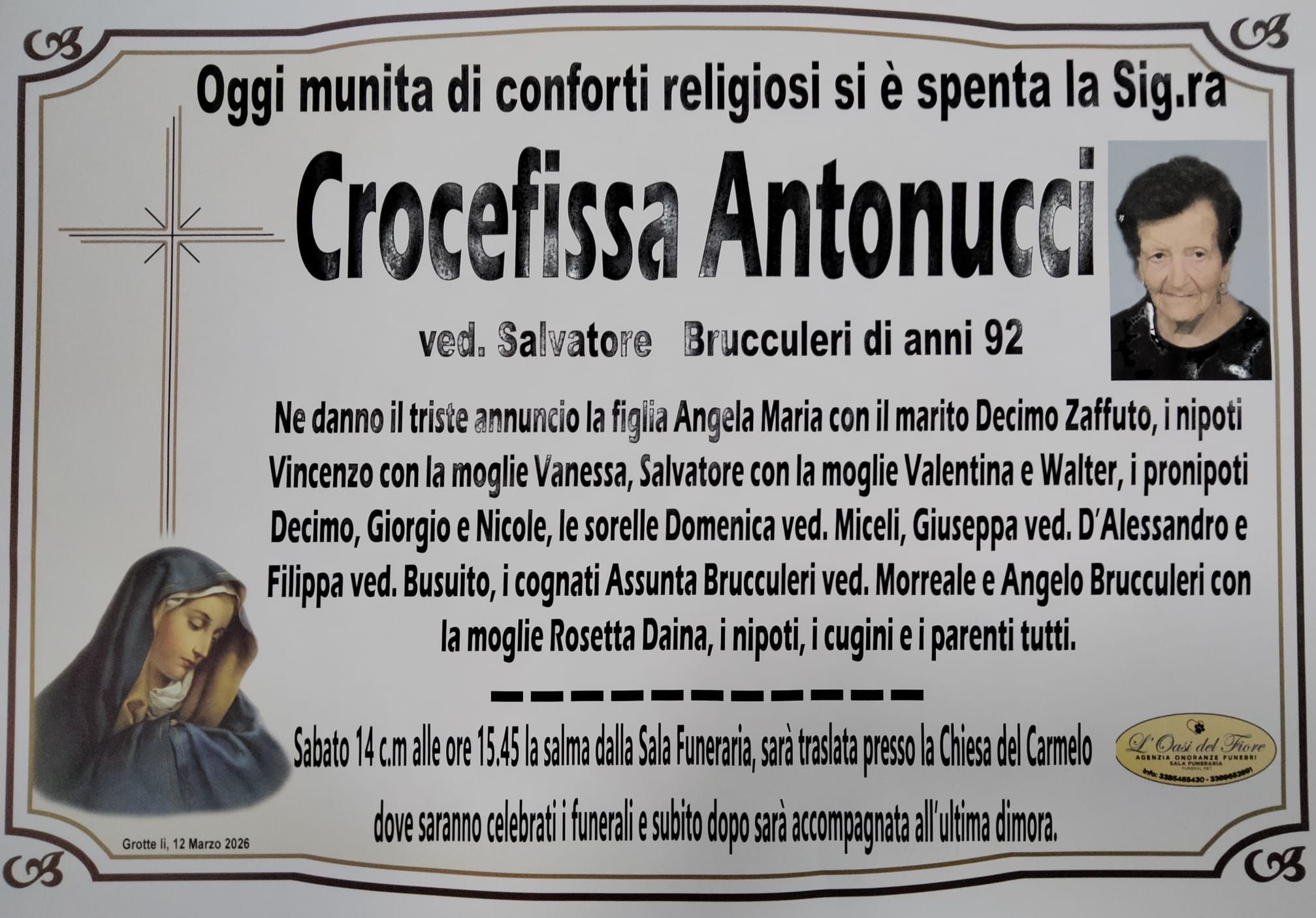Una santa messa in suffragio verrà celebrata venerdì 13 marzo,