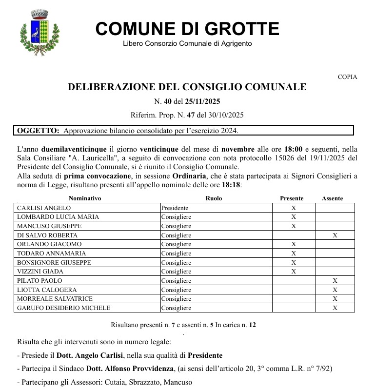 l'Ufficio elettorale del Comune di Grotte, la Commissione elettorale