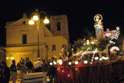 statua viene portata in processione per le strade principali, illuminate