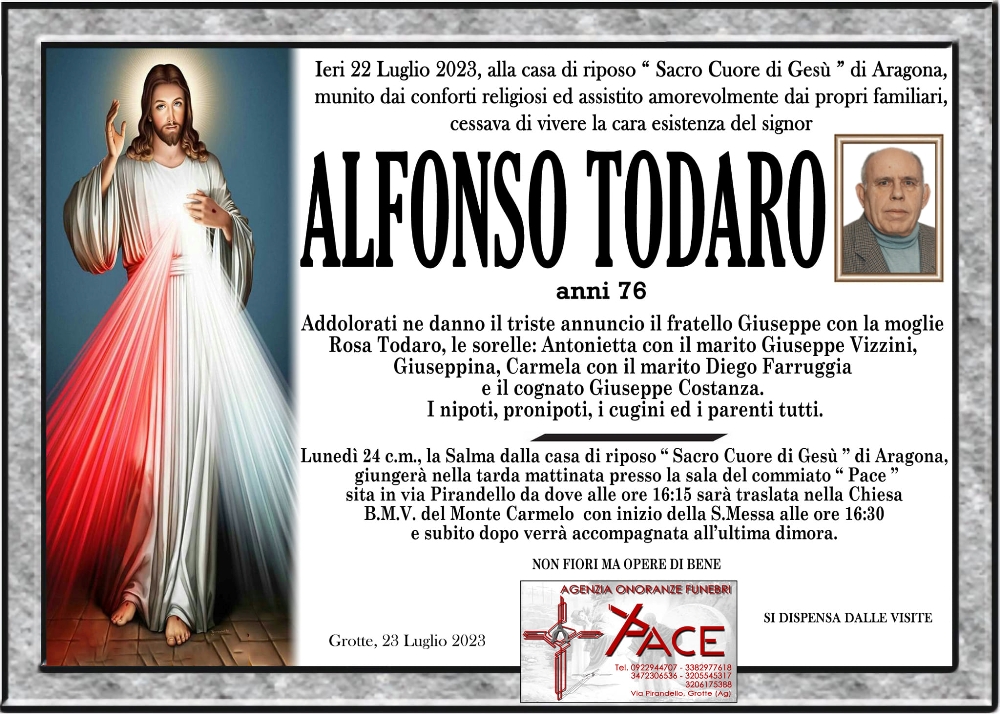 il sig. Alfonso Todaro, all'età di 76 anni.