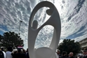 un lungo e slanciato abbraccio, che simboleggia il sogno di un'umanità unita