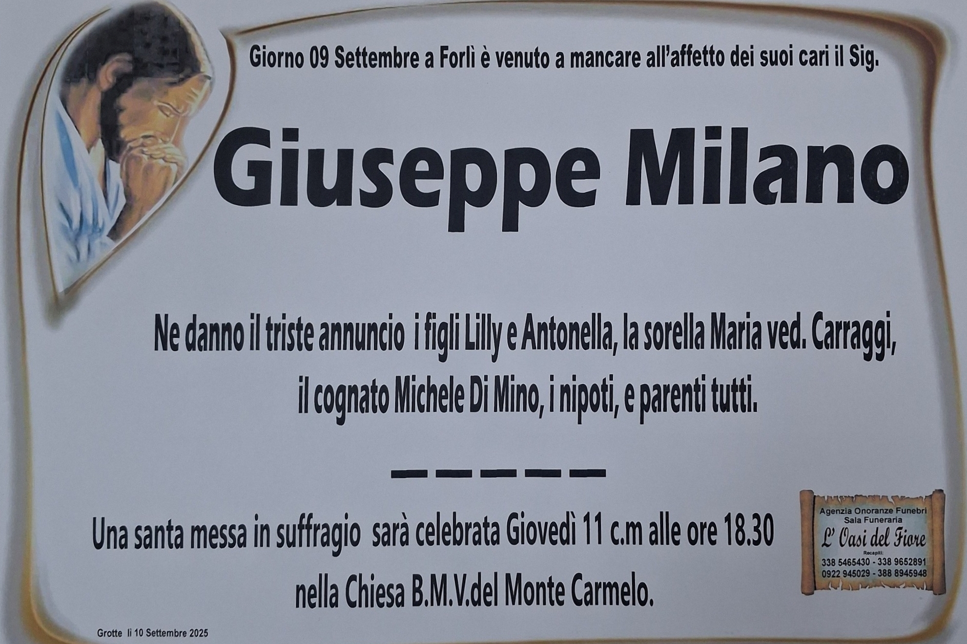 alla casa del Padre il sig. Giuseppe Milano;