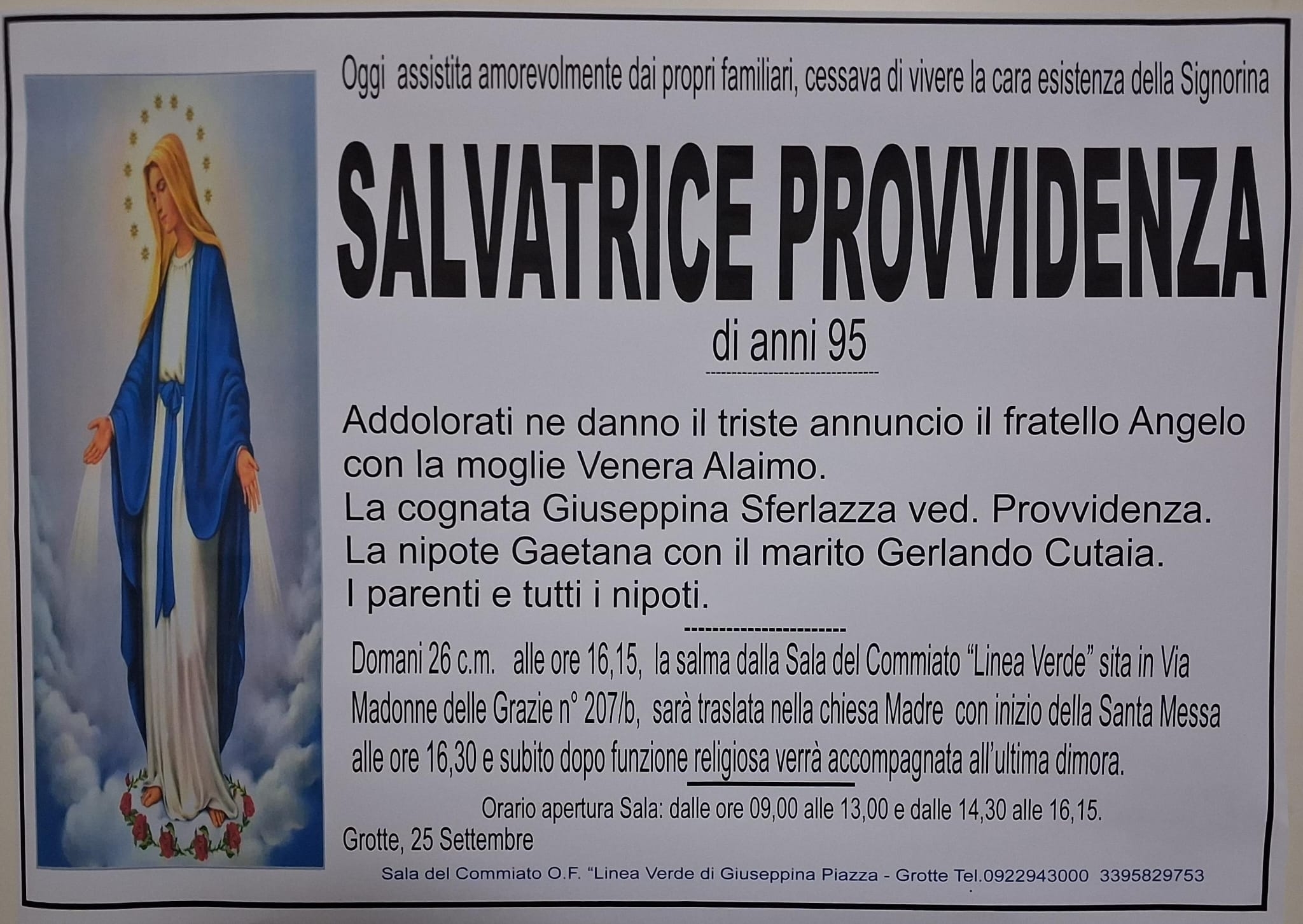 Salvatrice Provvidenza, all'età di 95 anni.