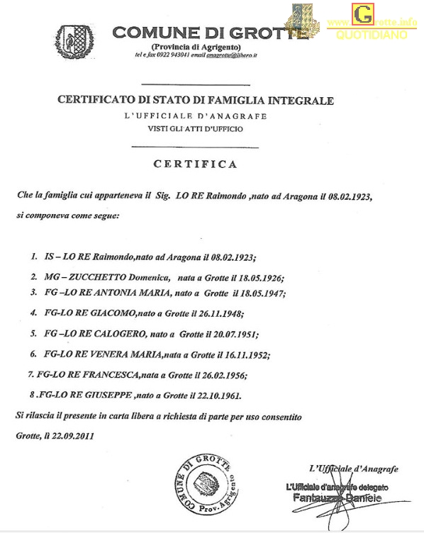 Purtroppo la famiglia Lo Re continua a perdere i suoi pilastri. Già riposano