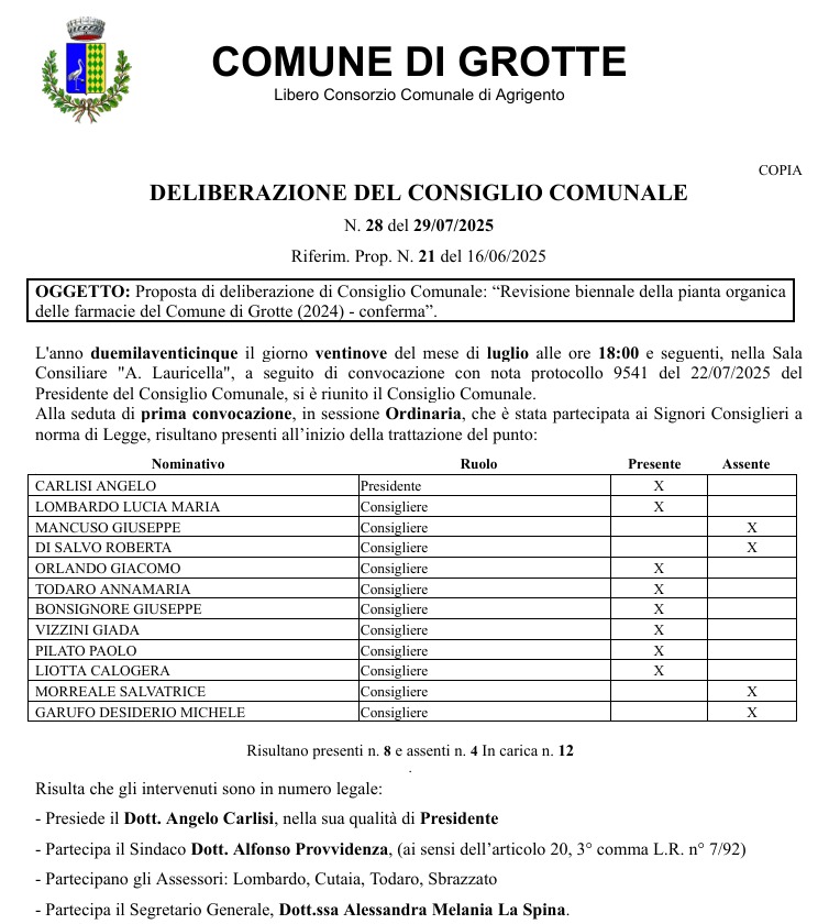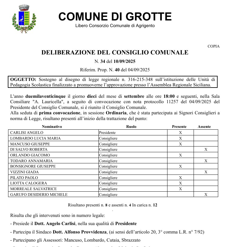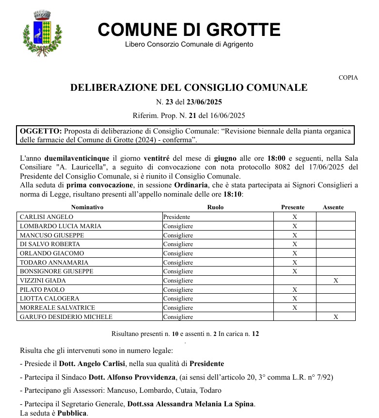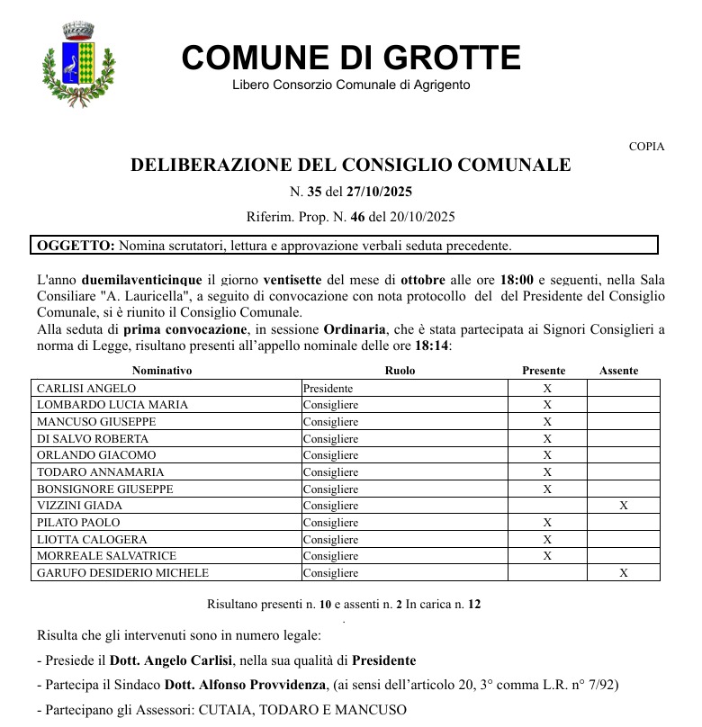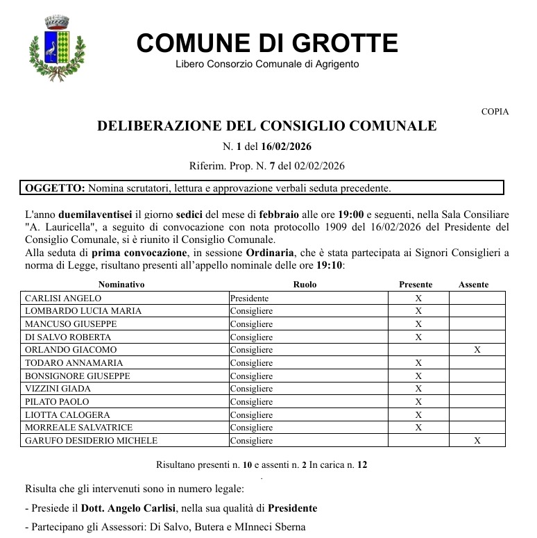 l'Ufficio elettorale del Comune di Grotte, la Commissione elettorale