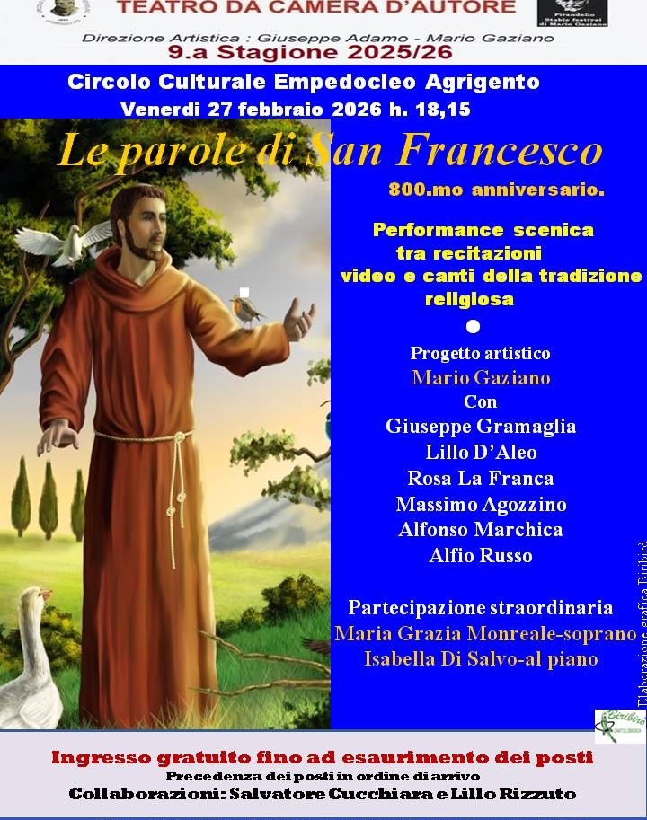 "Le parole di San Francesco" in scena al Circolo Culturale Empedocleo